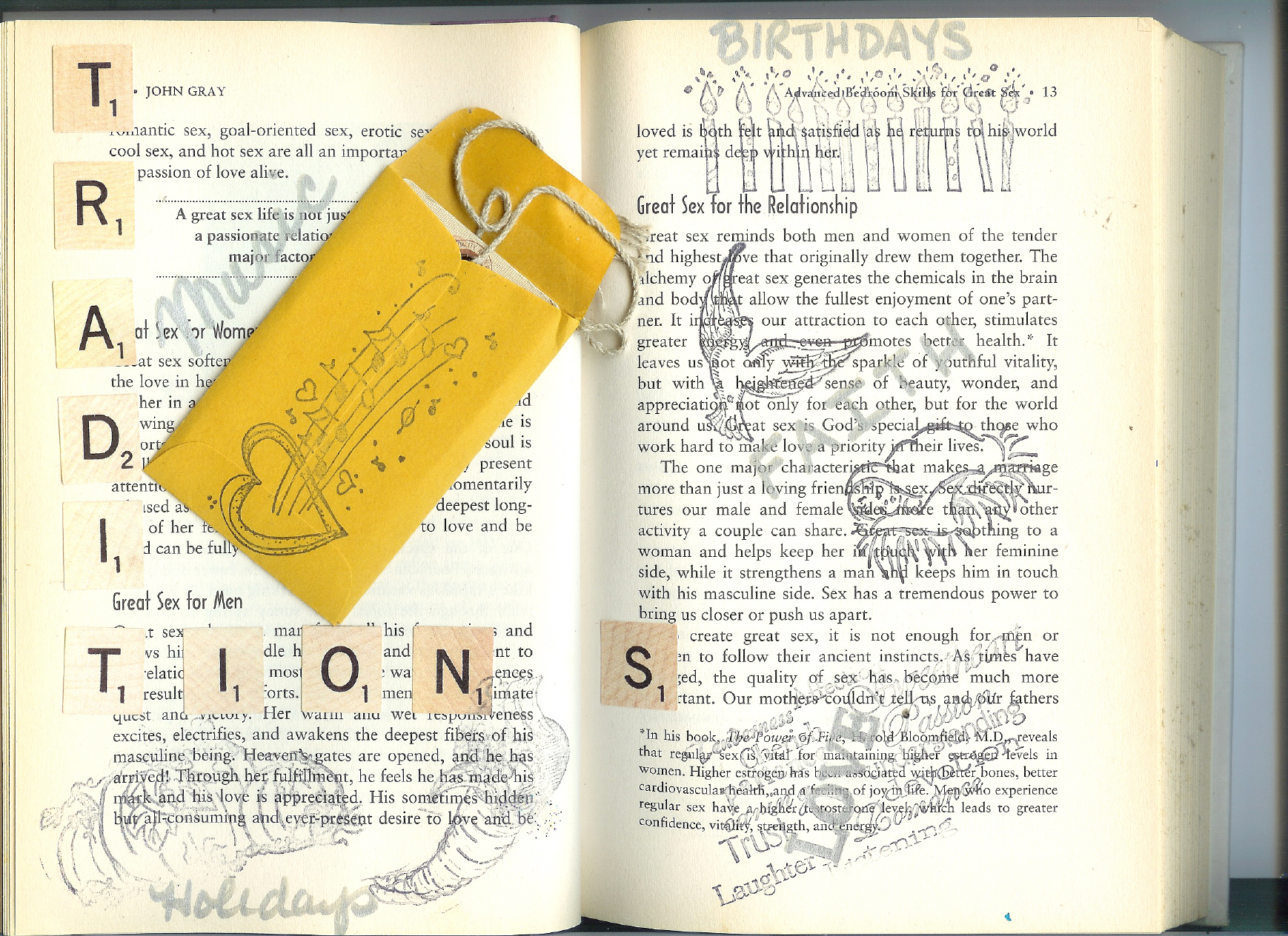 Above is the first attempt at the pages for the theme, “Traditions.” The next blog entry is the set of pages I like best – just the words.