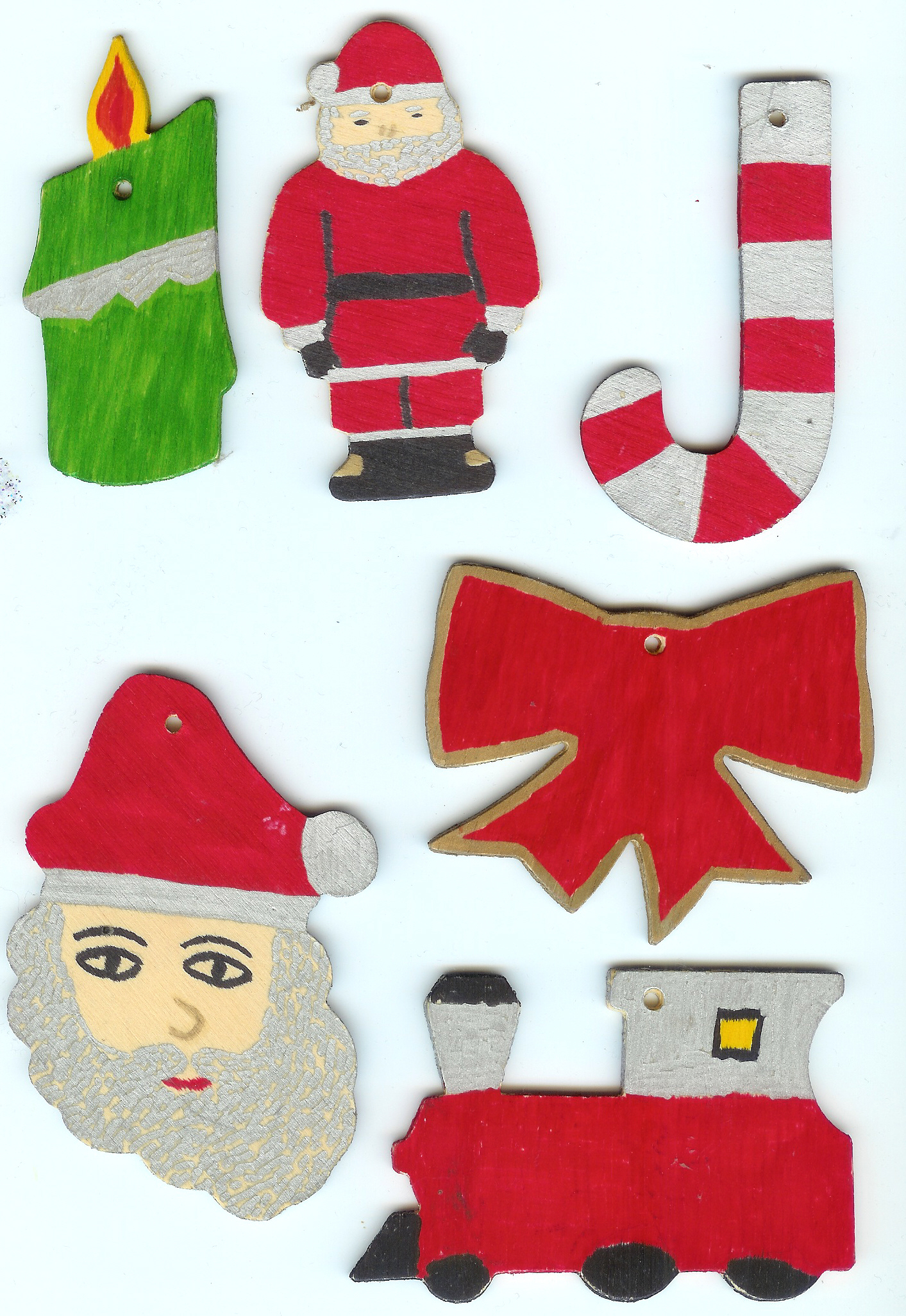 These were precut wooden shapes. They did not have lines to decide what goes where. They are done in Sharpie permanent marker.