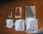 There was a lot of water going around and pushing the tissue into the crevices on the stamp. Then, came the tough part – waiting. You have to wait until the tissue castings dry to take them off the stamp. So off to watch Grey’s Anatomy and sleep. The next morning found the casting dry.