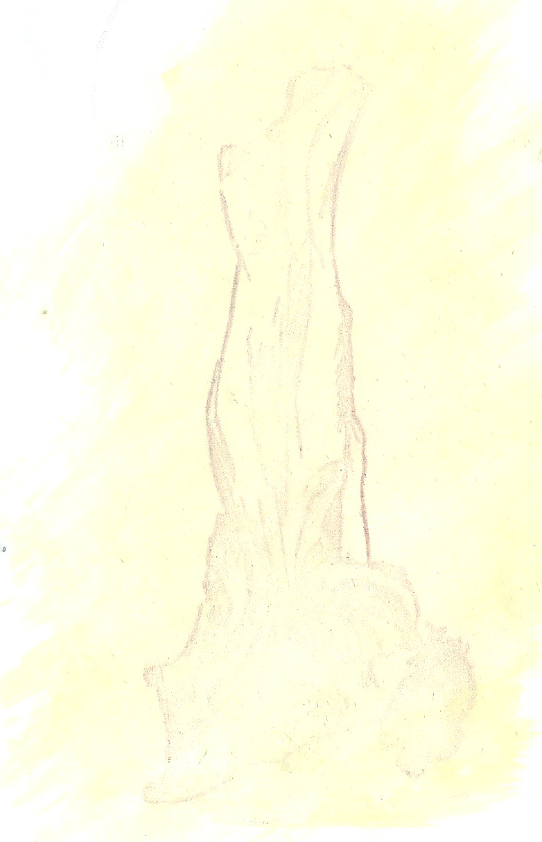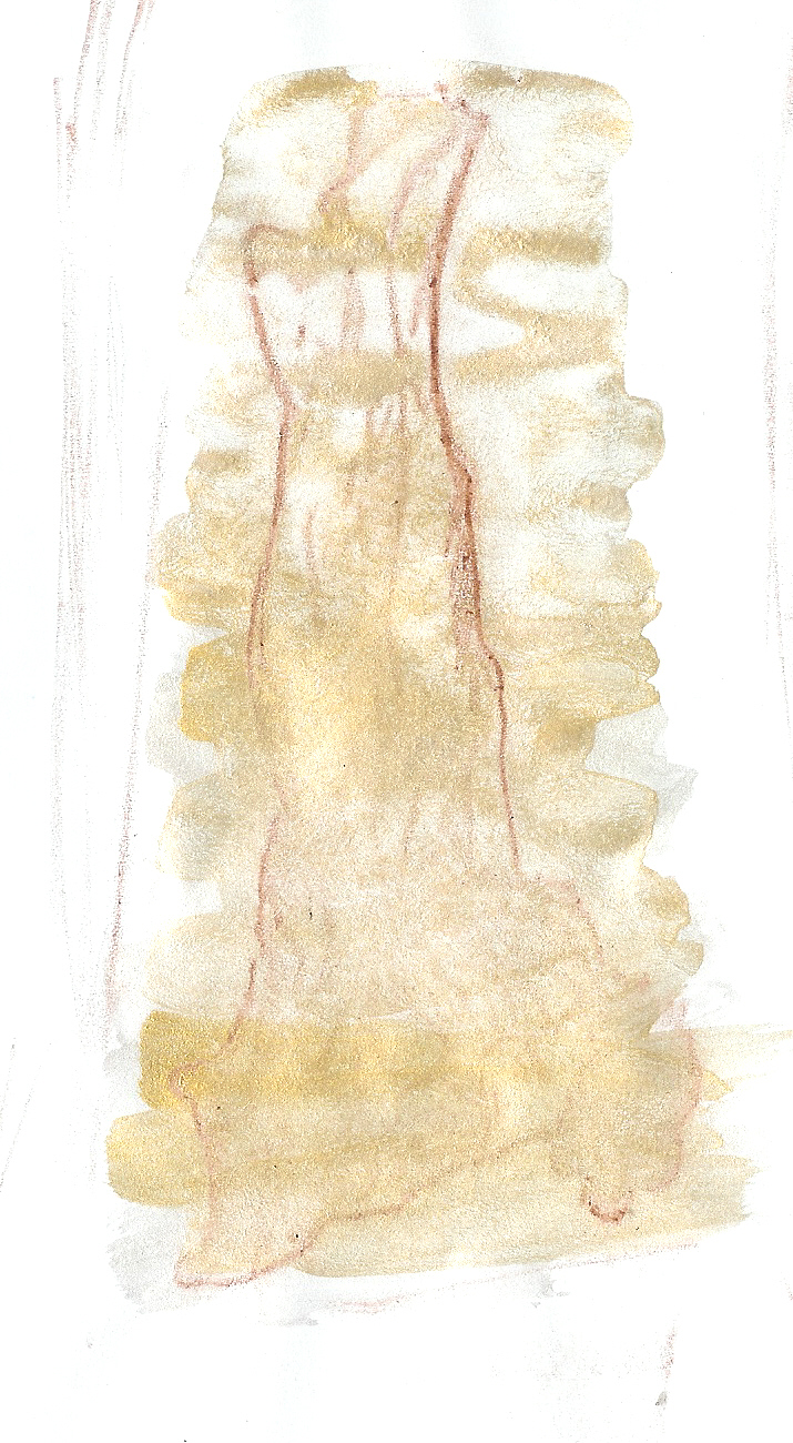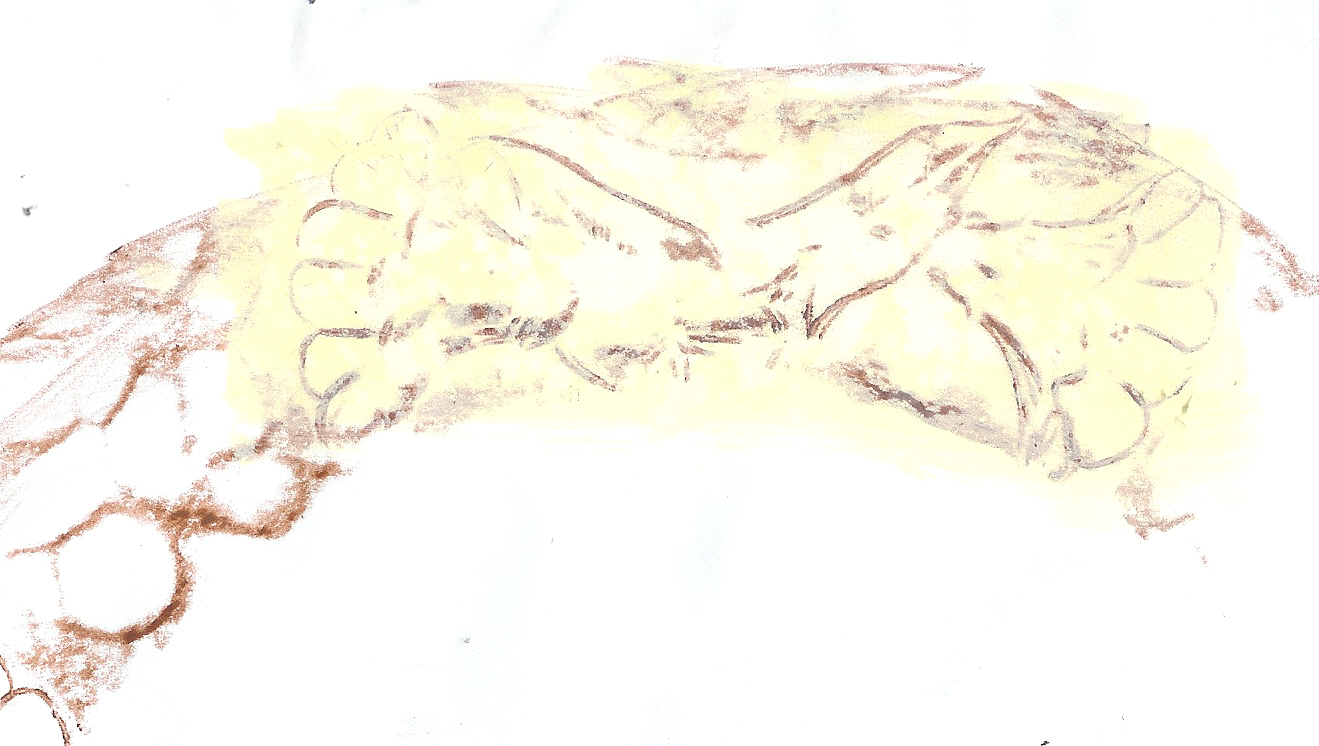 Please ignore the mess on my table as I was trying to find the room with the best light. I did use two different color crayons – brown and white. You cannot see the white rubbing but can see the brown one. I, then, took watercolors and went over the rubbings and quickly blotted excess paint off the paper.