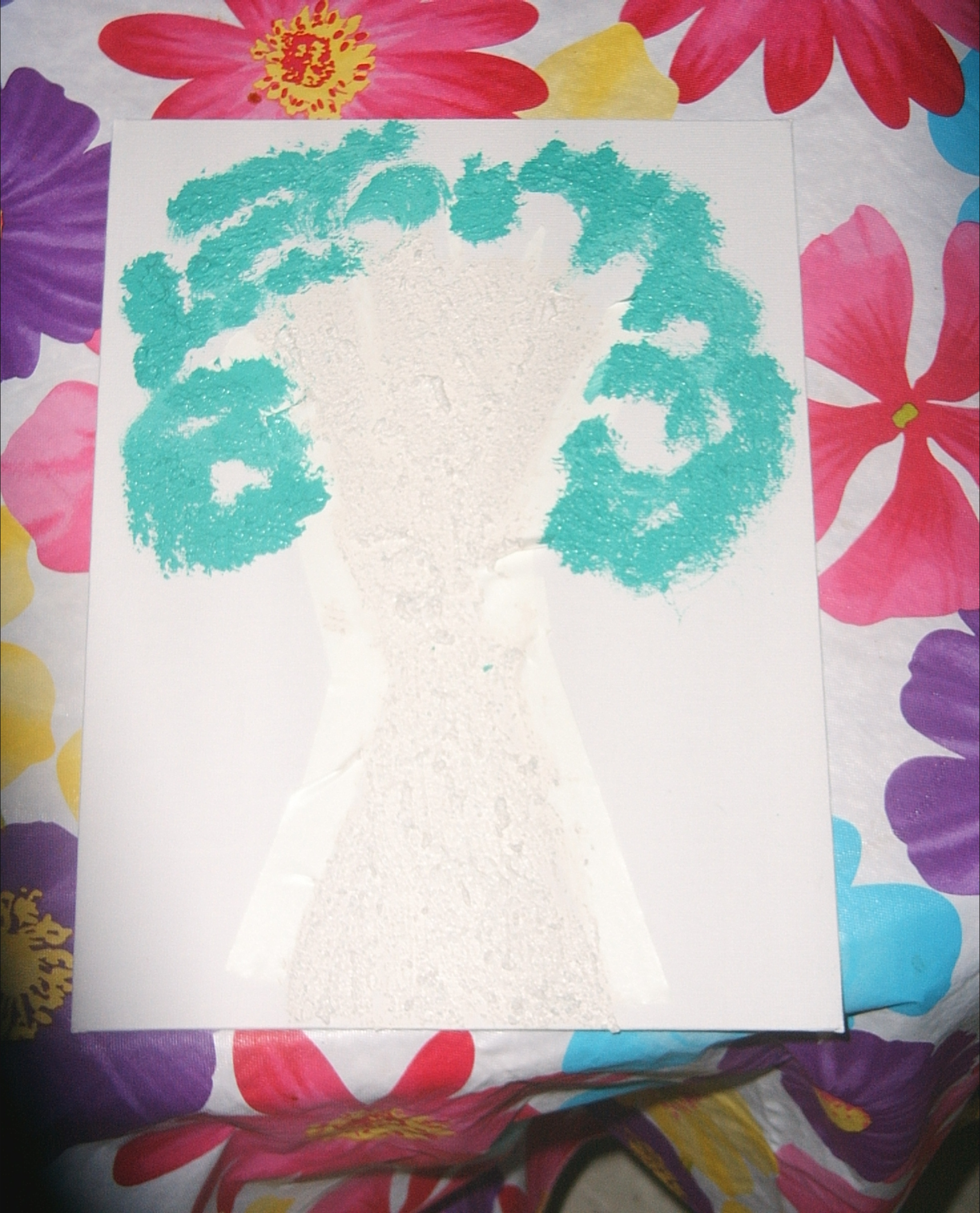 Once I did this step, I then mixed a little green acrylic from my tube with the left over gesso and sand to start the leafing of the tree. Back a few weeks ago, I talked about how everything was suddenly green and still have this thought in my mind. Overnight, I let the canvas sit and dry.