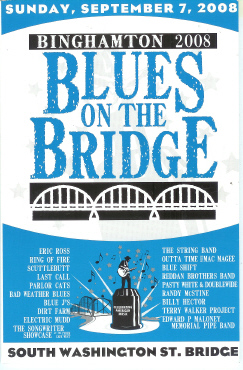 As the organizers say in most of their release materials, where else will you find 19 bands playing in 11 hours? Well, just yesterday, it was in downtown Binghamton at the downtown end of the Washington Street Bridge at Blues on the Bridge. Hopefully, some pics of the day will show up on this blog as my camera crapped out on me and wouldn’t work.