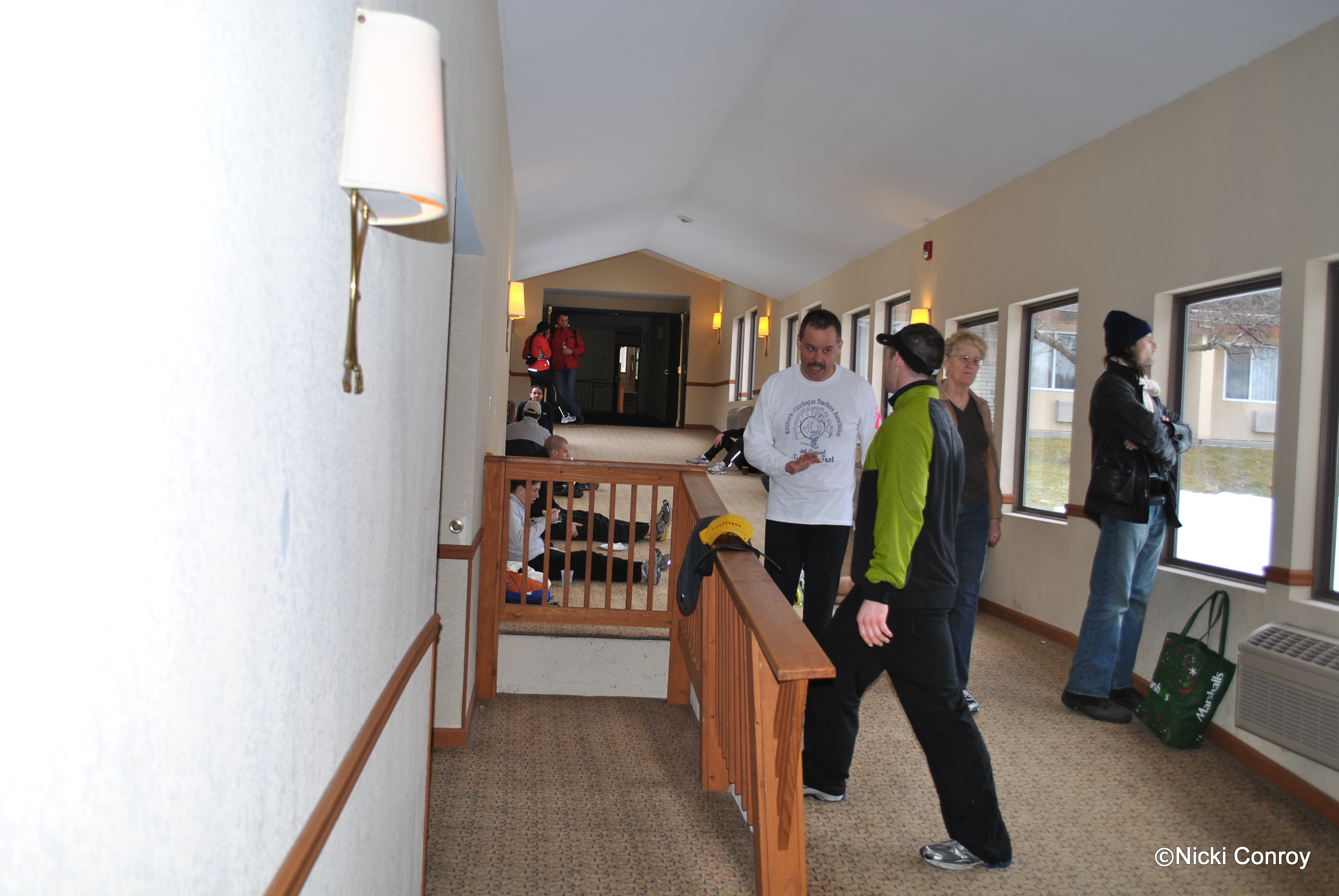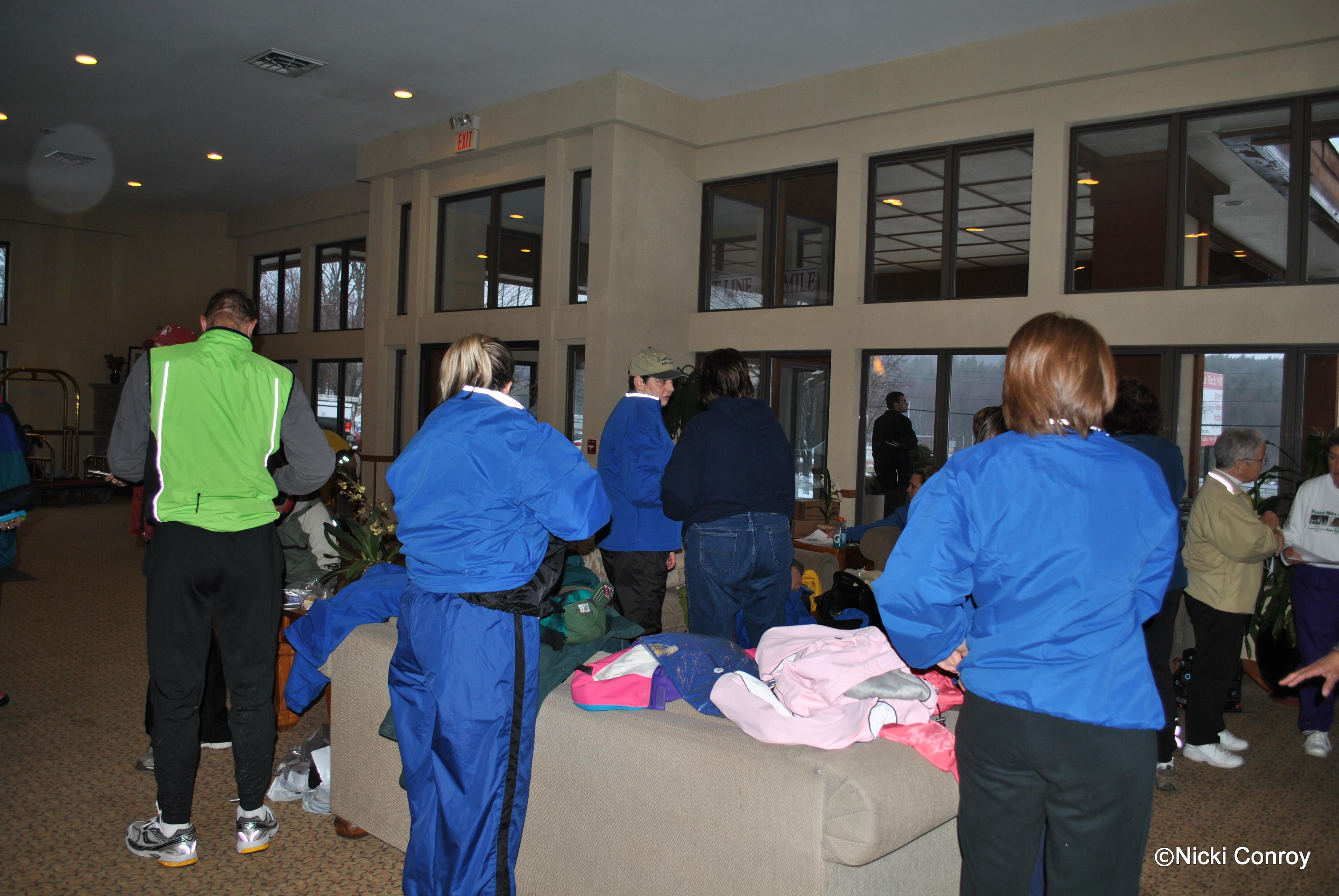 Despite my holding that I am truly a shy person, I talked to all kinds of people.  I spoke with three runners that are running  Boston this April.  I spoke with runners and walkers.  I decided what was necessary to wear – but still couldn’t decide about gloves and hat.  I took a short run outside and decided definitely gloves and winter headband to start with as it was cold.  I took my camera down to the lobby for a bit to get a few more pictures.