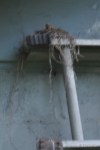Seems my family is again hosting a robin’s nest. The back of my garage has a ladder hanging on it. On the top of the ladder is a nest. I had not noticed it but my youngest, who has to walk by it every morning to get to the bus, knew it was here again. Big news! There is at least one baby in the nest.