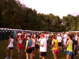We arrived in Utica about 6:25 am on Sunday for an 8 am race start.  All three of us still needed to pick up our packets and then warm-up.  Hydrating while we were waiting was high on the list also.  With hydration comes the natural need to relieve one’s self.  Well, plan ahead.
