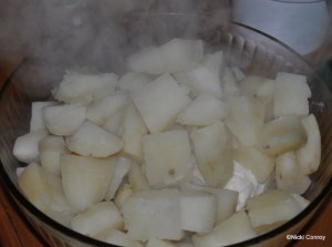 5 pounds good baking potatoes, peeled and chopped to small pieces