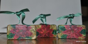 Of course, I had many different ideas of what I was going to for the ornament swap. I have all kinds of craft items from shrink plastic to clay to paper to inks to card stock to …that’s it! To dominoes. Here is the a quick tutorial.