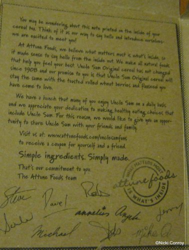 You can find out more information about these two Uncle Sam’s cereals and other products from Attune Foods by visiting their website. They are currently running a contest which can be found under the community tab. You can also follow them on Twitter at http://www.twitter.com/attunefoods.