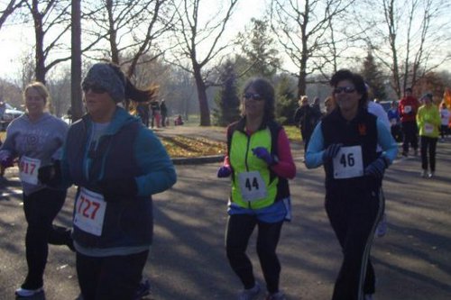 Thanksgiving morning dawned sunny once the sun made its appearance. I live in a valley so even though sunrise may be at 7 AM, the sun may not get over the hill and down where I am until almost 8 AM. I awoke at 6 AM and made my sweet potatoes for Thanksgiving dinner while having my morning coffee. My friend Jennifer should be at my house between 8:15 and 8:20 for the two of us to head to the local Turkey Trot.