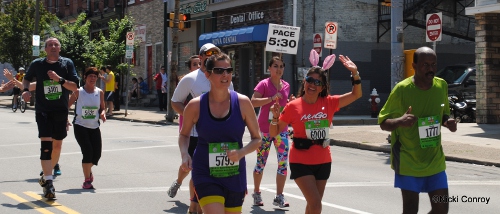 Marie got to know a few of us but the group was much larger as we got going. There was a 20-something Pittsburgh resident that was running with the group. It was Christine’s birthday so we all sang “Happy Birthday!” All this fun and we hadn’t even started moving towards the start line, let alone started running.