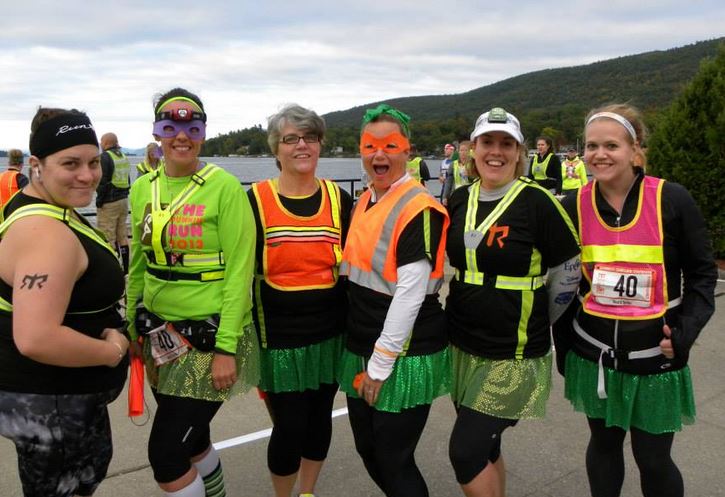 Let me say tractor trailers coming barreling down the road towards you in the dark is really scary. And, while I run hills all the time, it was a cruel joke to put the end of the leg up a hill into Ticonderoga Middle School. In the dark – under beautiful stars, I slapped that bracelet on Meredith’s wrist for the second time. It was about quarter of one, Saturday morning.
