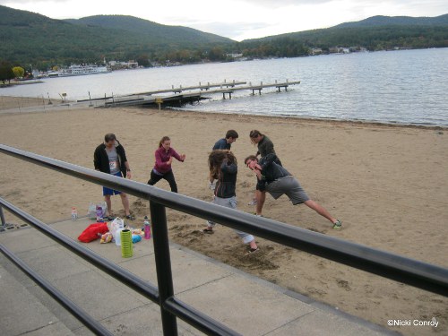 The second major exchange was at Million Dollar Beach along Lake George. Parking was limited as there were so many 15 passenger vans but we got a spot not too far from Van 2. And the wait begins for runner 12 to come in and put the slap bracelet on runner 1’s arm. Below are some of the shots from that wait time.