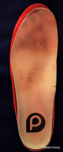 Since putting the insoles in my old Brooks PureFlows, I have run about 25 miles in them. They wear and feel great inside when running. I am not so into them when outside running. I really have had hit and miss comfort in running with them. I do, though, love having them in my shoes when I have one of those days where I have to walk a lot. I wore these the day I photographed the marathon. I was on my feet on pavement for about five hours and my feet never once bothered me.