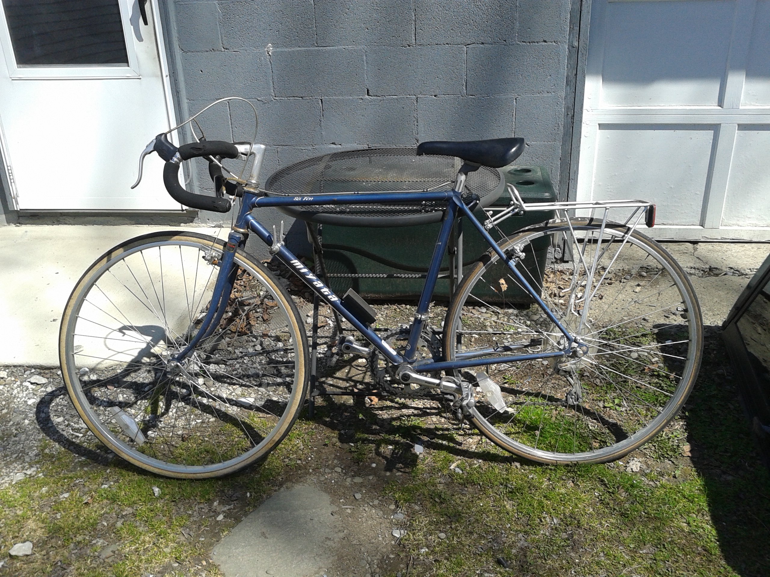 This baby now has new tubes and tires. I have had the old water bottle holder – it was a big velcro thing and the accompanying bottle had velcro on it – removed and a new one put on. I bought a new saddle as, since getting the bike in 1984 I have had tailbone issues so I wanted a more cushioned seat.